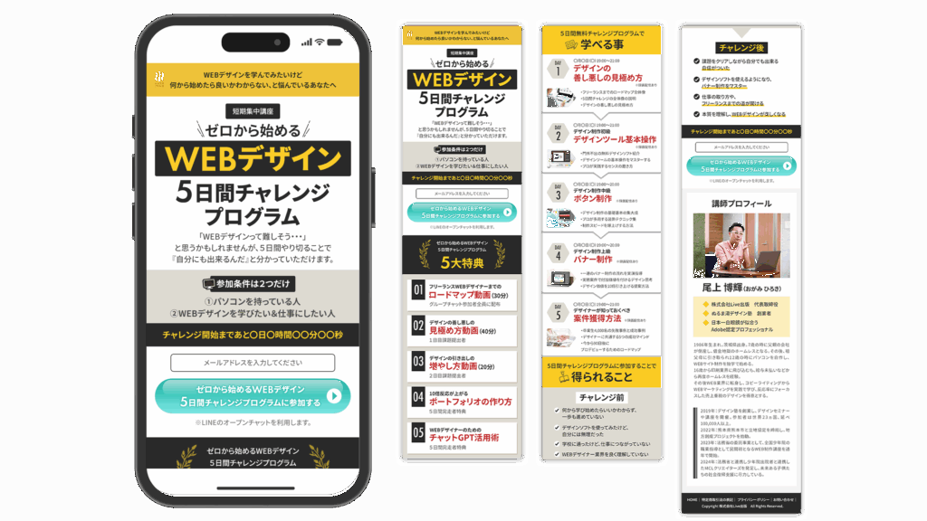 目的:無料のWEBデザイン5日間チャレンジに参加してもらうこと